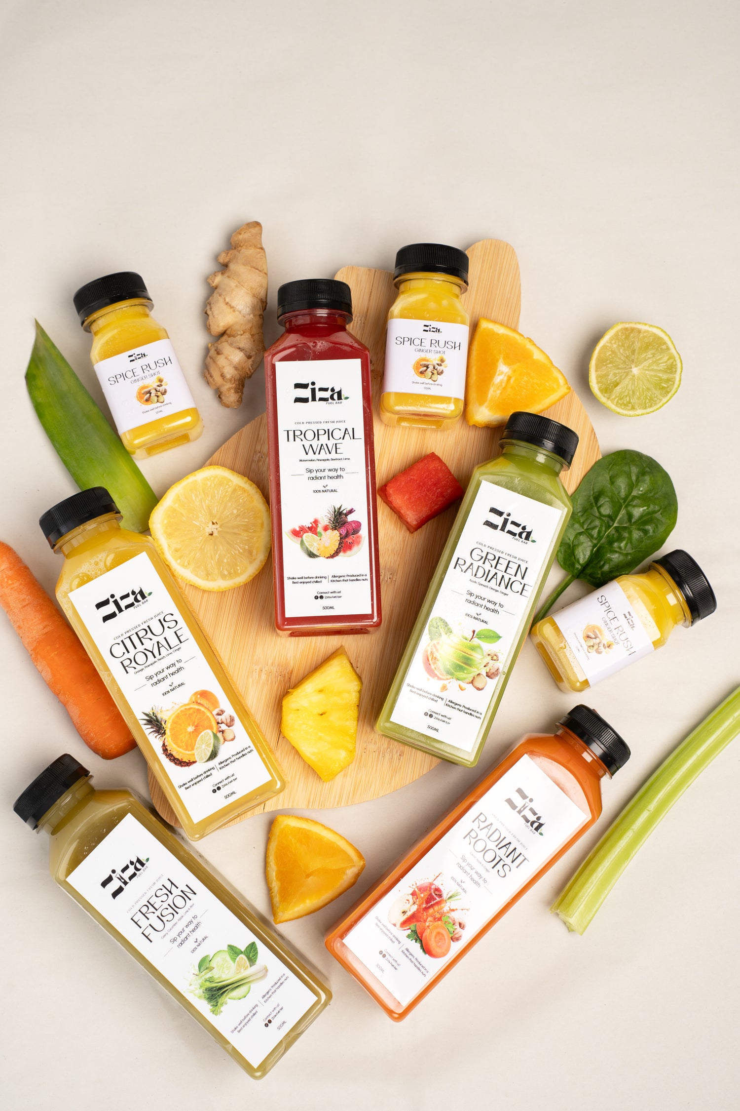 At Ziza Fuel Bar, we believe wellness should taste as good as it feels. Our founder’s mission is to make healthy living effortless with refreshing drinks crafted from natural fruits, roots, and superfoods. Every bottle supports energy, balance, and vitality while building a community that celebrates wellness, joy, and authenticity in every sip.